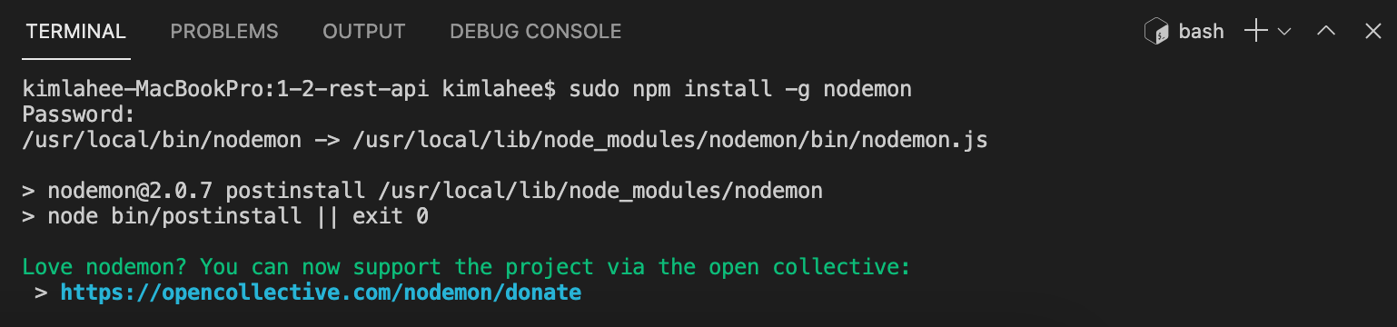 내가 원래 하려던 명령어 : npm install -g nodemon
